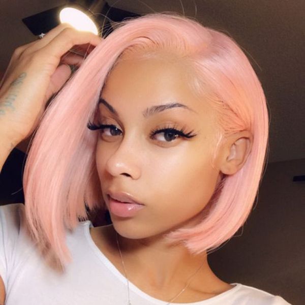Pink Short Bob Lace Front Wigs Pre Plucked With Baby Hair