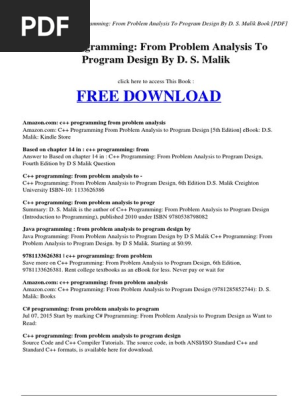 Pdf Download C Programming From Problem Analysis To Program Des